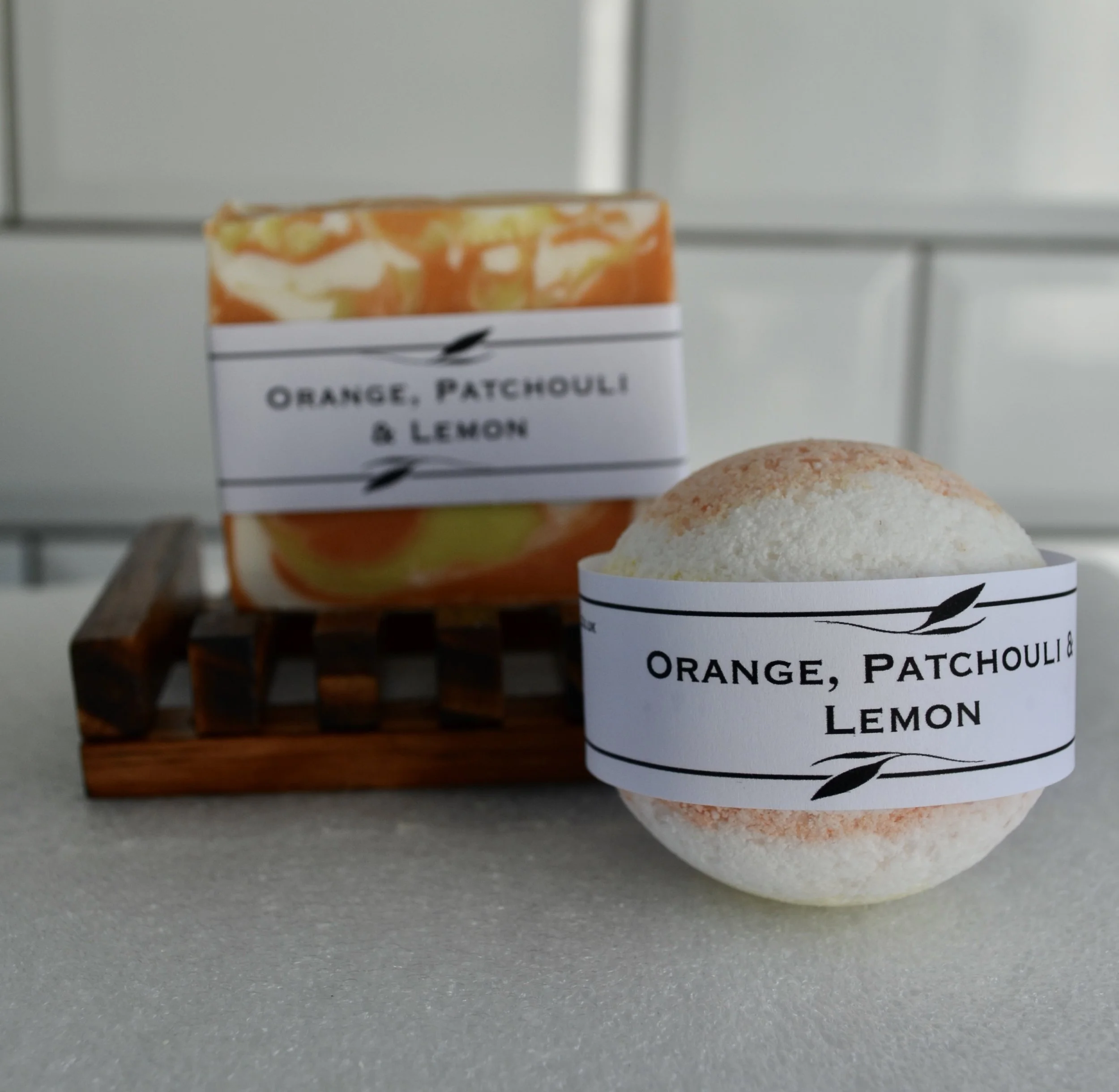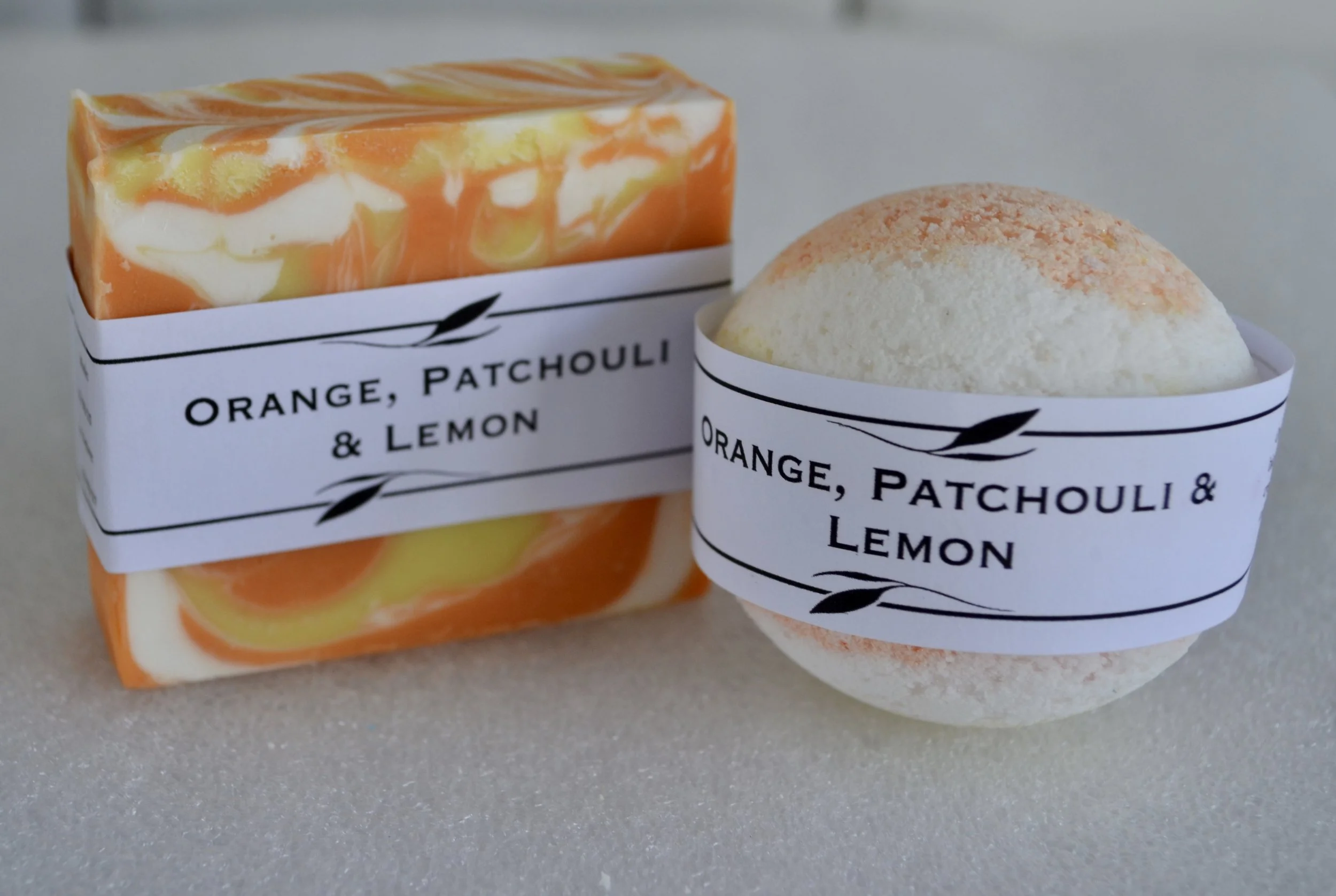 Sodium carbonate, epsom salts, citric acid, sodium lauryl sulfoacetate, potassium bitartrate (cream of tartar), cocos nucifera oil (coconut oil), hamamelis virginia water (witch hazel), Citrus Sinensis Peel Oil (sweet orange) essential oil, (citral, linalool, limonene), Pogostemon Cablin Oil (patchouli) essential oil (pogostemon cablin oil), Citrus Limon (Lemon) Peel essential oil, titanium white, natural micas, FD&C yellow no 5.