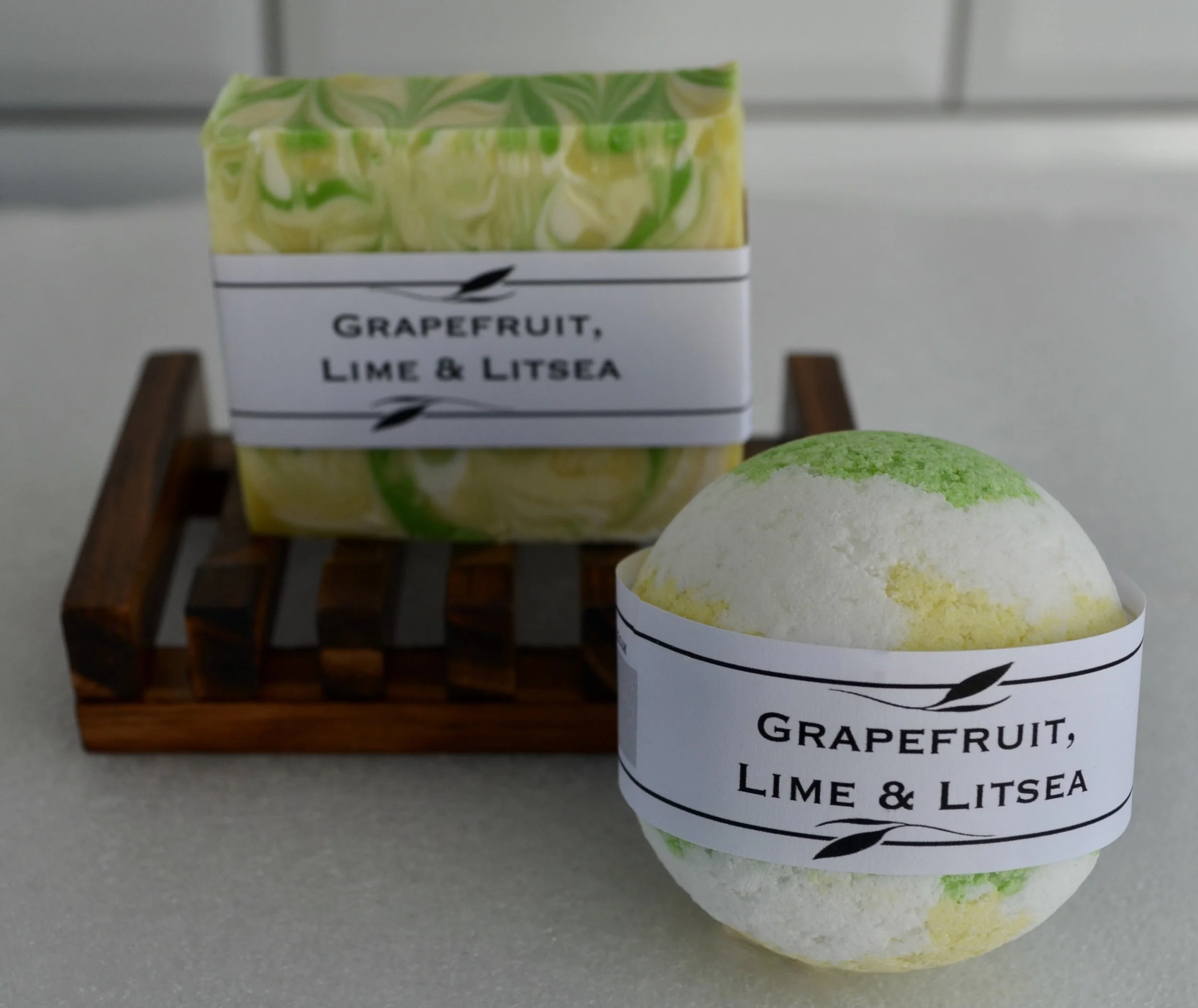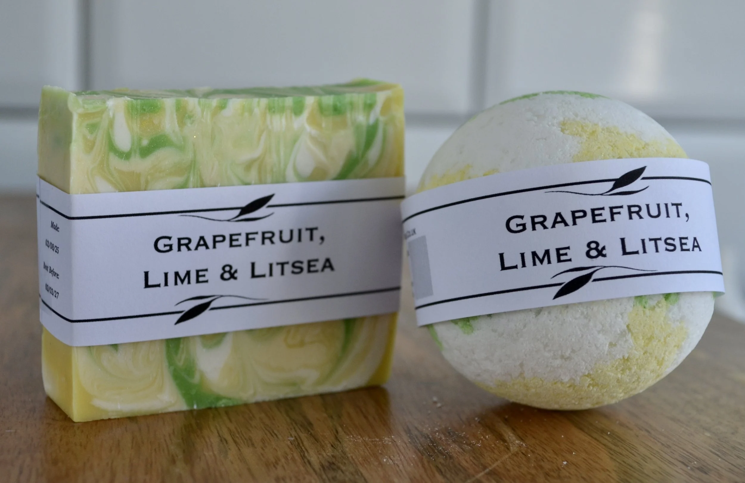 Sodium carbonate, epsom salts, citric acid, sodium lauryl sulfoacetate, potassium bitartrate (cream of tartar), cocos nucifera oil (coconut oil), hamamelis Virginia water (witch hazel), Grapefruit) Peel essential oil, (limonene), Citrus Aurantifolia (Lime) Essential Oil (linalool), Litsea Cubeba Fruit (Litsea) Essential Oil, (citral, citronellol, geraniol), natural mica colours,titanium dioxide, D&C green no5, FD&C yellow no5.