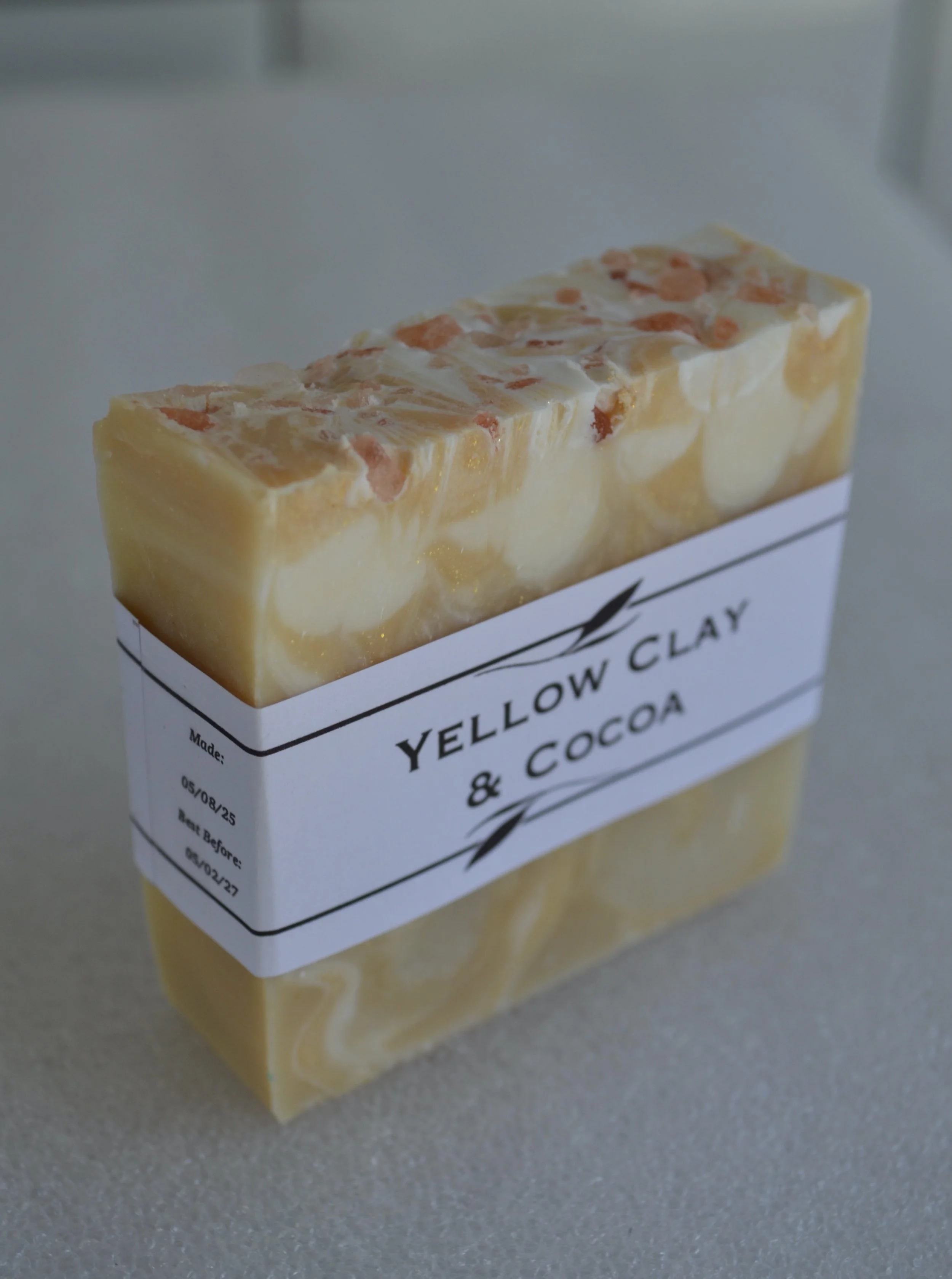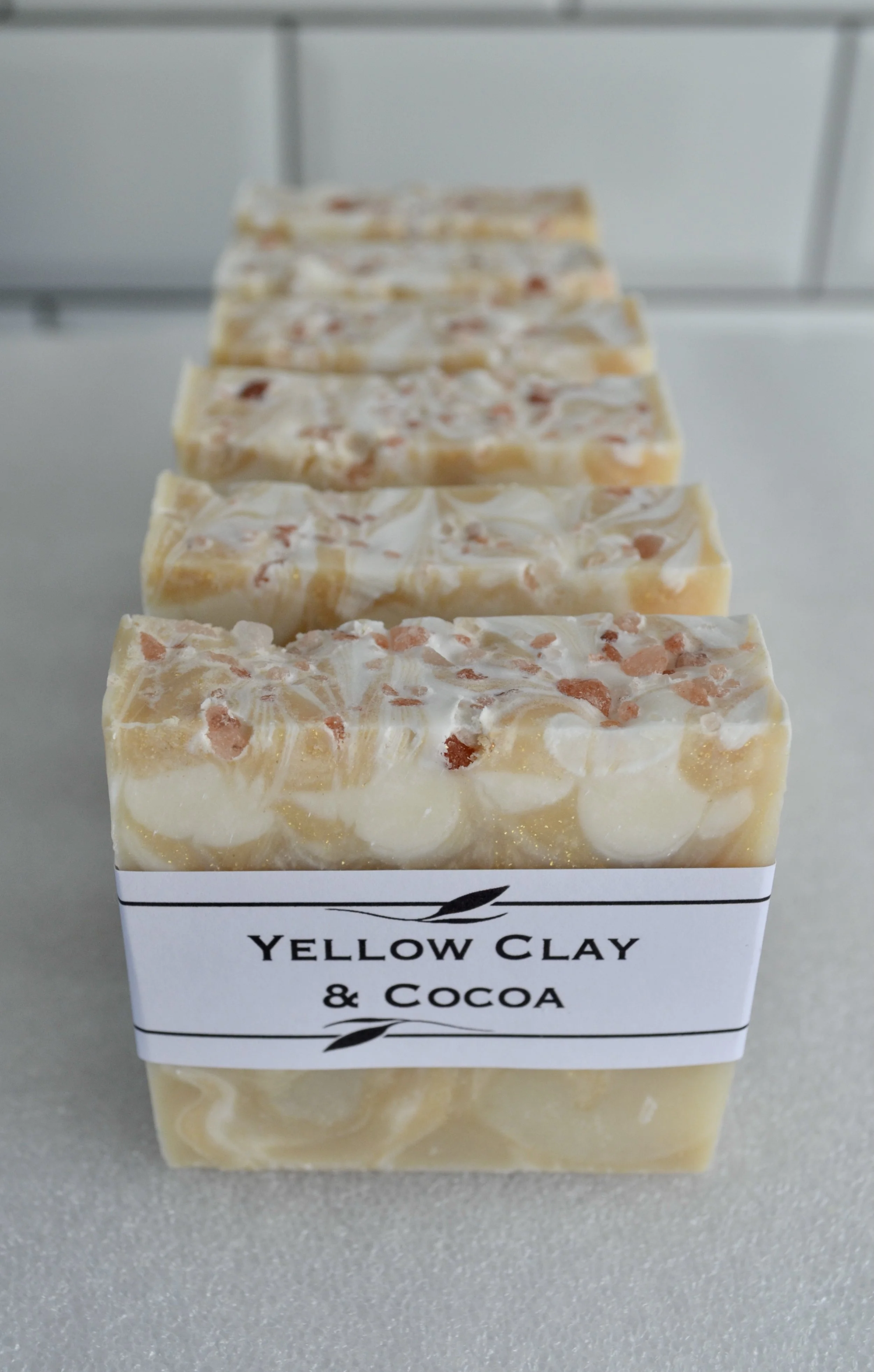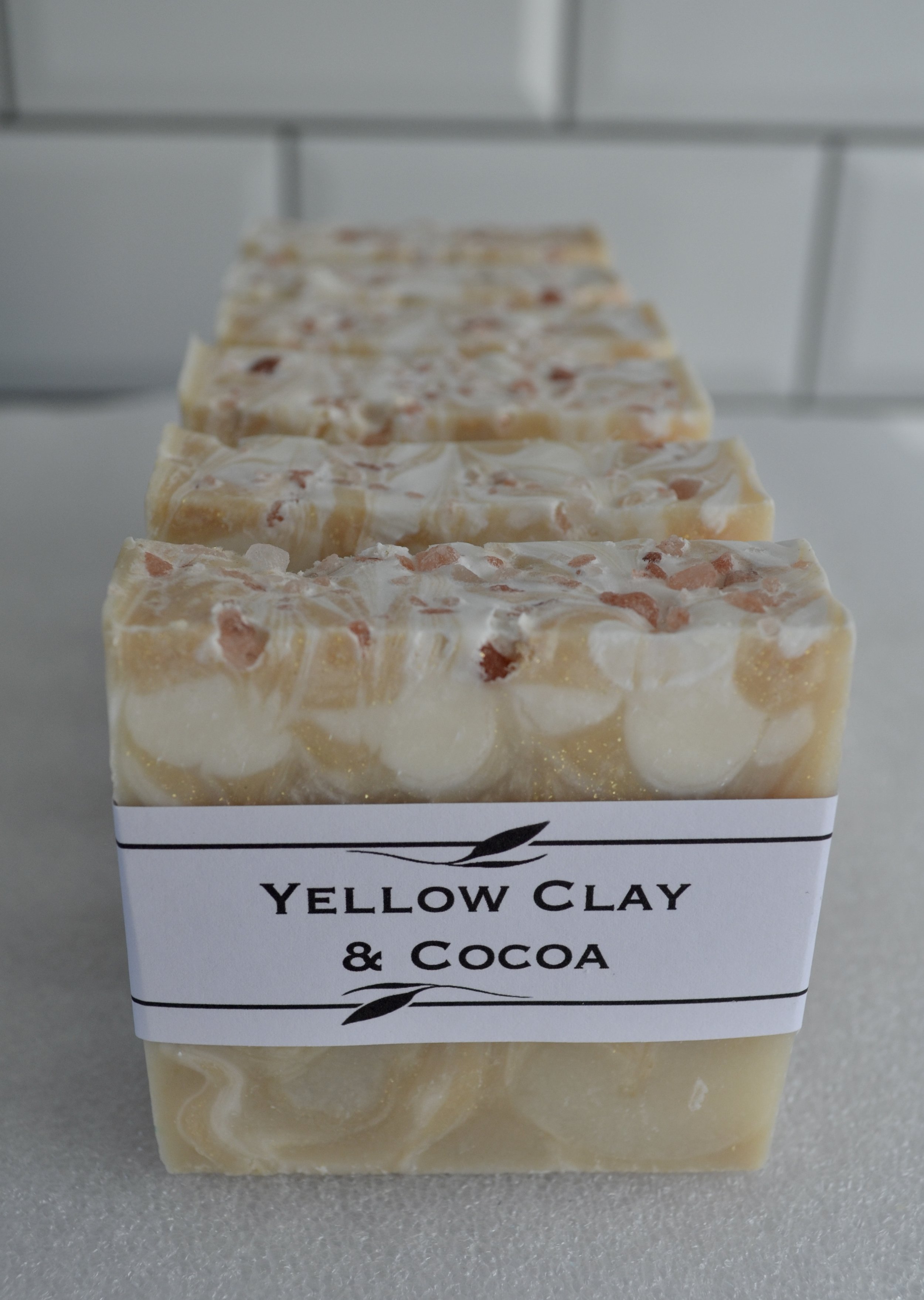 Olea Europara Fruit Oil (Olive oil), water, Cocos Nucifera Oil (coconut oil), Persea Gratissima Oil (avocado oil), sodium hydroxide, Theobrama Cacao Seed Butter (Cocoa butter), Garcinia Indica Seed Butter (kokum butter), Ricinus Communis Seed Oil (castor oil), Prunus Amygdalus Dulcis Oil (almond oil), sodium lactate, sodium chloride (pink sea salt) Lavandula Angustifolia (Lavender) essential oil, (beta-caryophyllene, camphor, coumarin, eugenol, geranyl acetate, lavandula oil, linalyl acetate), Melaleuca Alternifolia (Tea Tree) Leaf essential Oil, (alpha-terpinene, pinene, terpineol, terpinolene), Pelargonium Graveolens Flower Oil (geranium) EO (citral, citronellol, geraniol, limonene, linalool), kaolin clay, green clay, titanium white, natural mica, FD&C green no 5.