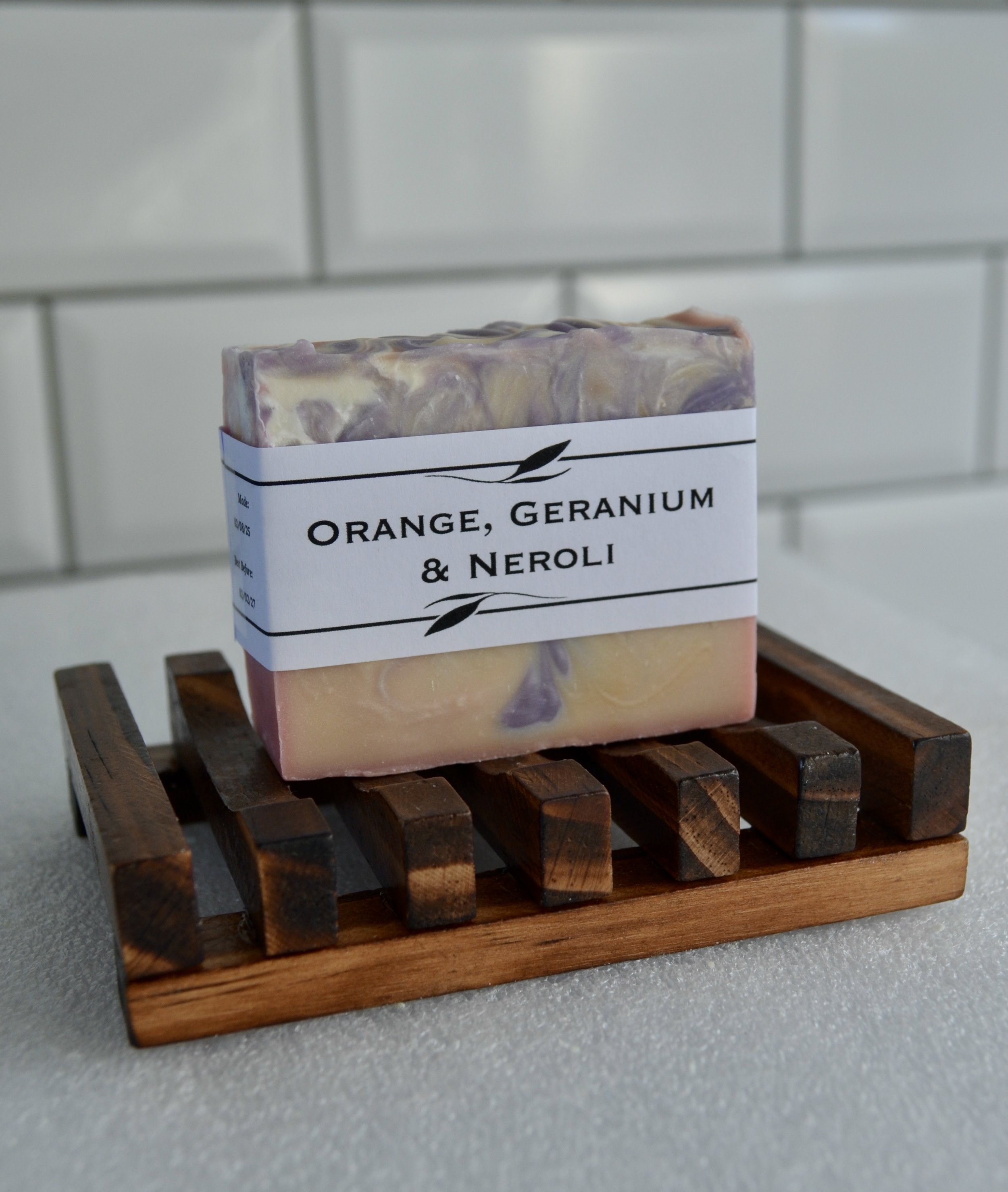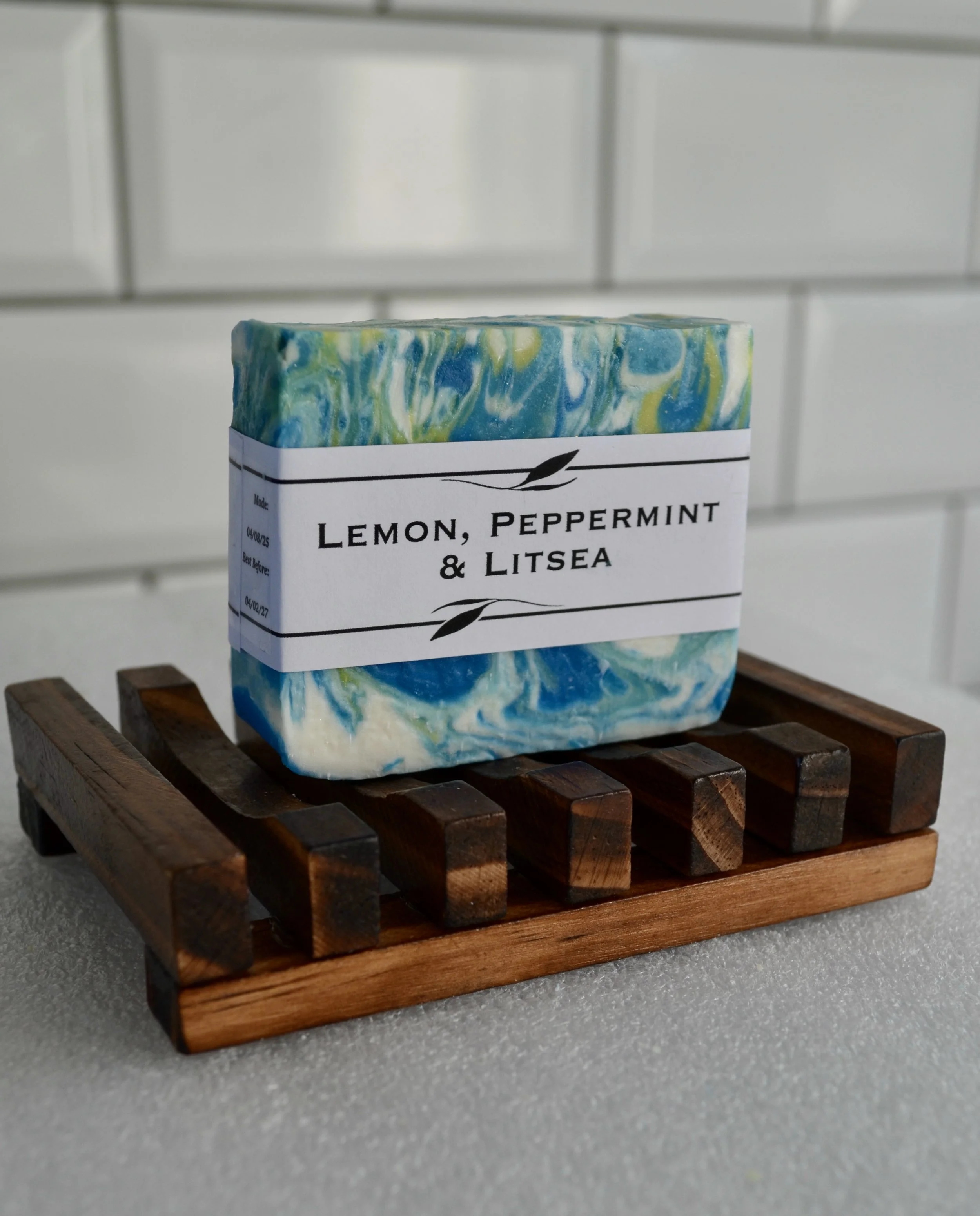 Set includes 1 aromatherapy Bath bomb, 1 cold process soap, 1 heel balm and 1 wooden soap dish